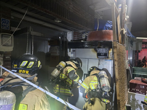 ºÎõÀÇ ÇÑ »ó°¡ ³ÃÀå°í¿¡¼ Àü±âÀû ¿äÀÎÀ¸·Î º¸ÀÌ´Â ÈÀç°¡ ¹ß»ýÇß´Ù.10¿ù 10ÀÏ ¿ÀÀü 5½Ã 50ºÐ °æ ºÎõ½Ã ¿ø¹Ì±¸ µµ´çµ¿ ¼ÒÀç A »ó°¡ 1Ãþ ½Ä´ç¿¡¼ Àü±â ÇÕ¼±À¸·Î º¸ÀÌ´Â ..