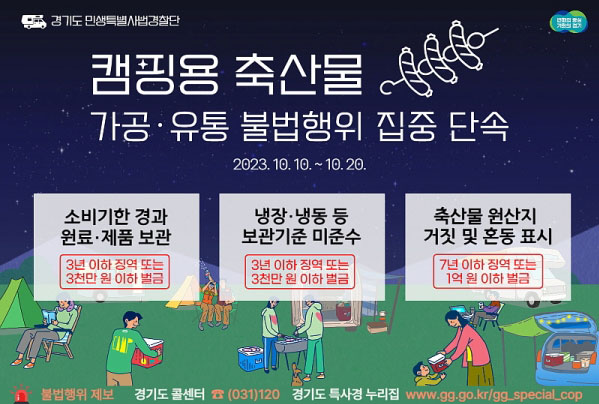 °æ±âµµ ¹Î»ýƯº°»ç¹ý°æÂû´ÜÀÌ 10¿ù 10ÀϺÎÅÍ 20ÀϱîÁö ¾ÈÀüÇÑ Ä·ÇÎÀå ¸Ô°Å¸® ȯ°æ Á¶¼ºÀ» À§ÇØ Ä·Çοë Ãà»ê¹° °¡°ø¡¤À¯Åë¾÷ü 90°³¼Ò¸¦ ÁýÁß ´Ü¼ÓÇÑ´Ù.