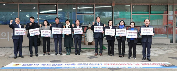 °æ±âµµÀÇȸ µ¶µµ»ç¶û¡¤±¹Åä»ç¶ûȸ(ȸÀå ±è¿ë¼º ÀÇ¿ø)´Â 20ÀÏ, °æ±âµµÀÇȸ ¡®ÆòÈÀÇ ¼Ò³à»ó¡¯ ¾Õ¿¡¼ ÀϺ»ÀÇ ¡®´ÙÄɽø¶ÀÇ ³¯¡¯ ÆóÁö¸¦ Ã˱¸ÇÏ´Â ¼º¸í¼¸¦ ¹ßÇ¥Çß´Ù.