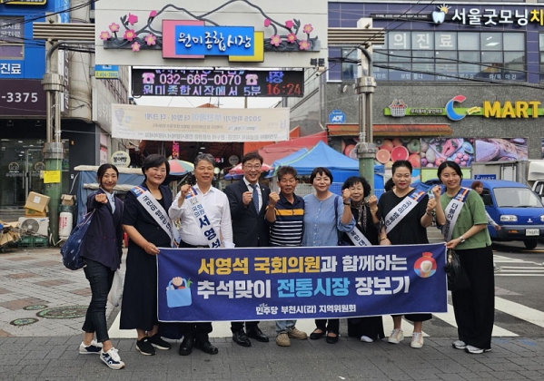 ´õºÒ¾î¹ÎÁÖ´ç ¼¿µ¼® ±¹È¸ÀÇ¿ø(ºÎõ½Ã°©, ±¹È¸ º¸°Çº¹ÁöÀ§¿øÈ¸)Àº ¹ÎÁ· ´ë¸íÀýÀÎ Ãß¼®À» ¸Â¾Æ Áö¿ª ³» ÀüÅë½ÃÀåÀ» ¹æ¹®ÇØ Áֹεé°ú Àλ縦 ³ª´©°í, »óÀεéÀ» °Ý·ÁÇß´Ù.