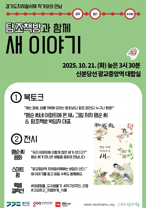 µÎ °¿¬ÀÚ´Â ¾ÆÆÄÆ® ½£¿¡¼ »õ¿Í ÀÌ¿ôÀÌ µÈ »ç¿¬°ú ±× °úÁ¤À» ±â·ÏÇÑ À̾߱⸦ µé·ÁÁÖ¸ç Âü°¡ÀÚµé°ú´Â ¡®³»°¡ ¸¸³ »õ À̾߱⡯, ¡®³ª¸¸ÀÇ Å½Á¶ °æÇ衯, ¡®µµ½É ¼Ó ¾ß»ýµ¿¹°°ú °øÁ¸ÇÏ´Â ¹æ¹ý¡¯ µîÀ» ÀÚÀ¯·Ó°Ô ³ª´ ¿¹Á¤ÀÌ´Ù.