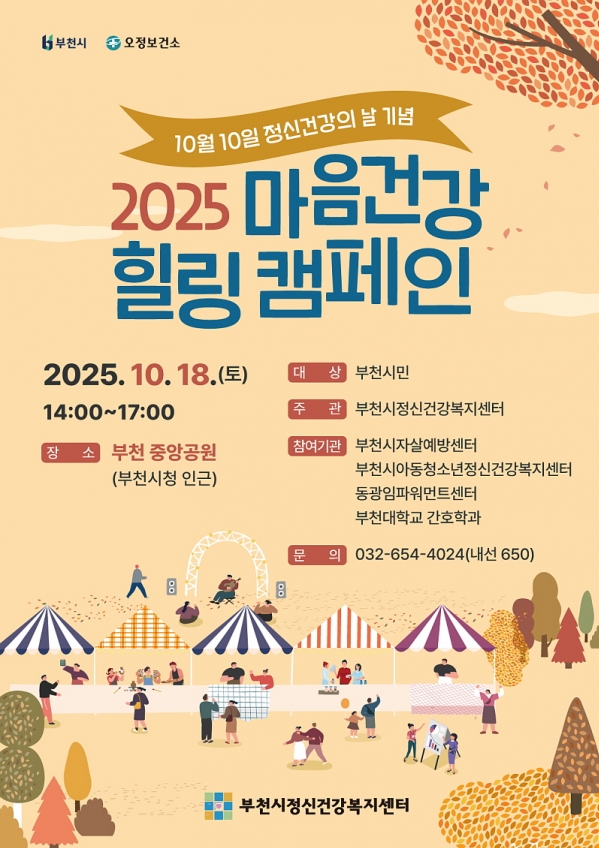 ºÎõ½Ã´Â ºÎõ½ÃÁ¤½Å°Ç°º¹Áö¼¾ÅÍ¿Í ÇÔ²² 2025³â Á¤½Å°Ç°ÀÇ ³¯(10¿ù 10ÀÏ)À» ±â³äÇØ 10¿ù 18ÀÏ ¿ÀÈÄ 2½ÃºÎÅÍ ºÎõÁß¾Ó°ø¿ø¿¡¼ ¡®2025 ¸¶À½°Ç° Èú¸µÄ·ÆäÀΡ¯À» ¿¬´Ù.