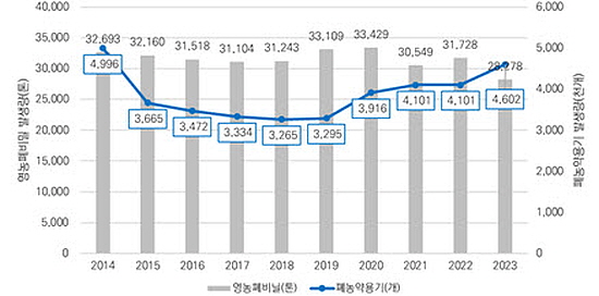 2023³â ±âÁØ °æ±âµµ ¿µ³óÆó±â¹° ¹ß»ý·®Àº ¿µ³ó Æóºñ´ÒÀÌ ¾à 3¸¸ Åæ(93%), Æó³ó¾à ¿ë±â°¡ ¾à 460¸¸ °³(94%)·Î ³ªÅ¸³µ´Ù.