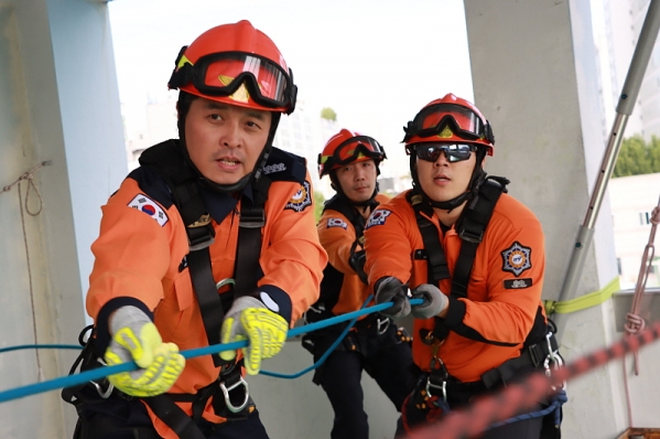 ÀÌÀ翵 ÀÇ¿øÀº ±¸Á¶´ë¿ø°ú ÇÔ²² ±¸Á¶Ã⵿ ¹× ·ÎÇÁ ±¸Á¶ÈÆ·Ã µîÀ» üÇèÇß°í, ±è±¤¹Î ÀÇ¿øÀº Áß¾Ó119¾ÈÀü¼¾ÅÍ¿¡¼ ¸»¹ú º¸È£º¹ Âø¿ë°ú °í°¡±¼ÀýÂ÷·® ž½Â ¹æ¼ö ÈÆ·Ã¿¡ Âü¿©ÇßÀ¸¸ç, ¹Ú»óÇö ÀÇ¿øÀº ±¸±Þ´ë¿Í ÇÔ²² ¹æÈº¹ Âø¿ë ¹× ÀåºñÁ¶ÀÛ ÈÆ·ÃÀ» ÁøÇàÇß´Ù.