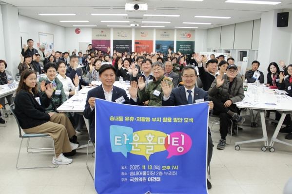 Áö³ 13ÀÏ, ¼Û³»¾î¿ï¸¶´ç¿¡¼ ¡®¼Û³»µ¿ À¯ÈÞ¡¤ÀúȰ¿ë ºÎÁö Ȱ¿ë ¹æ¾È¡¯À» ÁÖÁ¦·Î À̰ÇÅ ±¹È¸ÀÇ¿ø(´õºÒ¾î¹ÎÁÖ´ç, °æ±â ºÎõº´)ÀÌ ÁÖ°üÇÑ Å¸¿îȦ¹ÌÆÃÀÌ ¿·È´Ù.
