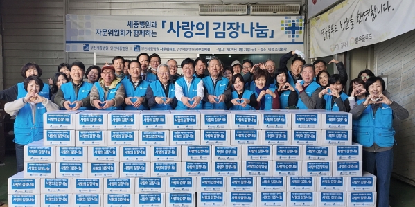 Çý¿øÀÇ·áÀç´Ü ¼¼Á¾º´¿ø(ÀÌ»çÀå ¹ÚÁø½Ä) ±¸¼º¿ø°ú ÀÚ¹®À§¿øÈ¸ À§¿øµéÀÌ Áö¿ª ¼Ò¿Ü °èÃþ Áö¿øÀ» À§ÇØ ±èÄ¡¿¡ ÇѲ¯ Á¤¼ºÀ» ´ãÀ¸¸ç ³ª´® ¹®È¸¦ ÆîÃÆ´Ù.