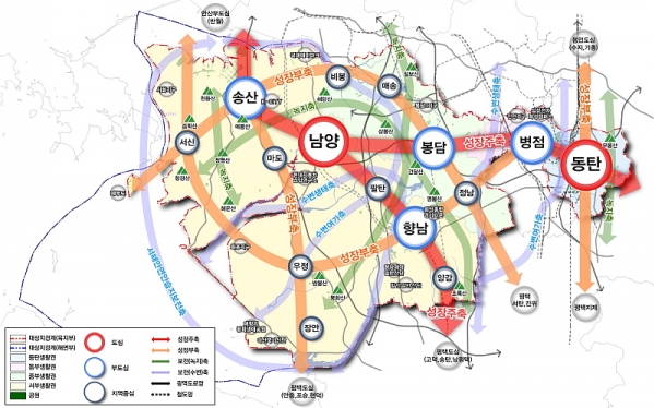 ȼº½Ã °ø°£±¸Á¶´Â ½Å±Ô °³¹ß»ç¾÷, GTX µî ±¤¿ª±³Åë¸Á µî¿¡ µû¸¥ °ÅÁ¡ º¯È¿Í ±ÕÇü¹ßÀüÀ» °í·ÁÇØ 2µµ½É 4ºÎµµ½É 9Áö¿ªÁß½ÉÀ¸·Î °èȹÇß´Ù.