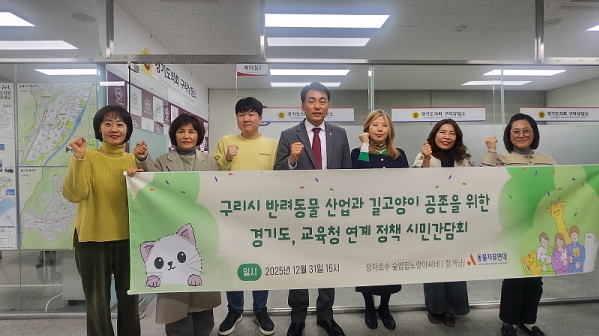 °æ±âµµÀÇȸ ±³À°ÇàÁ¤À§¿øÈ¸ ÀÌÀºÁÖ ÀÇ¿ø(±¹¹ÎÀÇÈû, ±¸¸®2)Àº ±¸¶ø 31ÀÏ, ±¸¸®½Ã¿¡¼ Ȱµ¿ ÁßÀÎ µ¿¹°º¸È£ ´Üü ¡®½£¹äÁý ³ë¶û¾Æ¾¾³×¡¯¿Í °£´ãȸ¸¦ ¿°í, ¹Ý·Áµ¿¹° »ê¾÷°ú ±æ..