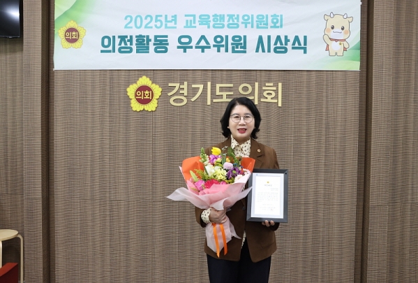°æ±âµµÀÇȸ ¿©¼º°¡Á·Æò»ý±³À°À§¿øÈ¸ ÃÖÈ¿¼÷ ÀÇ¿ø(´õºÒ¾î¹ÎÁÖ´ç, ºñ·Ê)ÀÌ 26ÀÏ °æ±âµµÀÇȸ ´ëȸÀǽǿ¡¼ ¿¸° °æ±âµµ ÇàÁ¤»ç¹«°¨»ç ¿ì¼öÀÇ¿ø ½Ã»ó½Ä¿¡¼ ¡®2025³â °æ±âµµ Çà..