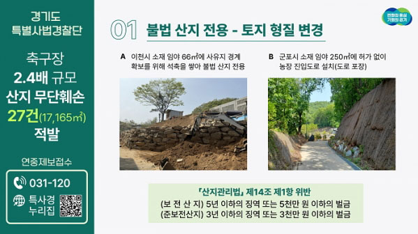 °æ±âµµ Ư»ç°æÀº Áö¸ñÀÌ ÀÓ¾ßÀÎ ÅäÁö¸¦ Çã°¡ ¾øÀÌ ÇüÁú º¯°æÇϰí, ºÒ¹ý½Ã¼³¹°À» ¼³Ä¡ÇÏ´Â µî °æ±âµµ ³» ÀӾ߸¦ ÈѼÕÇØ ¿ø»óº¹±¸¸¦ Èûµé°Ô ÇÑ ÇàÀ§ÀÚµéÀ» À̹ø »êÁö ¹«´ÜÈÑ..