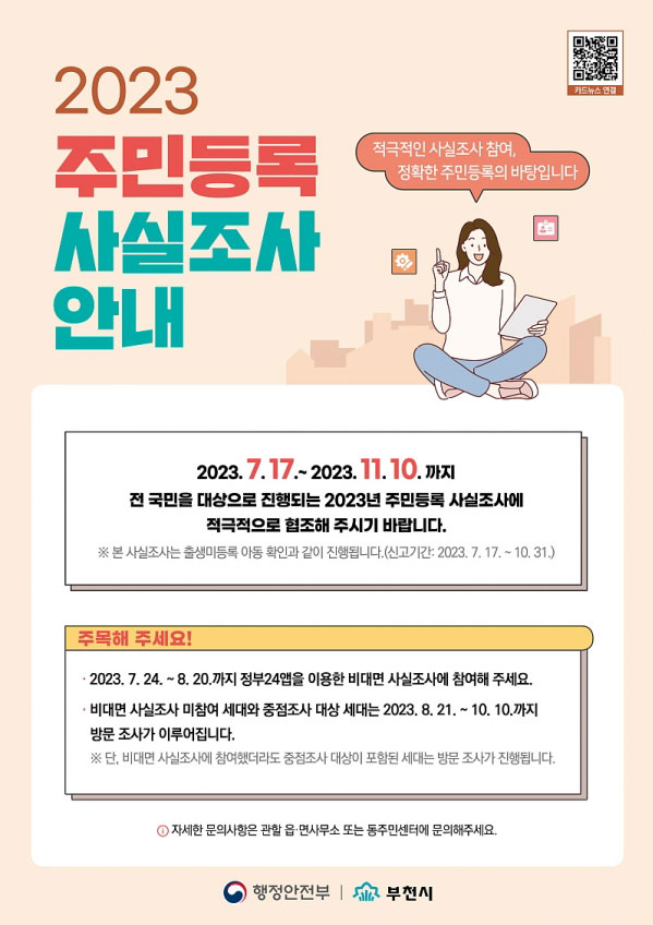 ºÎõ½Ã(½ÃÀå Á¶¿ëÀÍ)´Â Àü ½Ã¹ÎÀ» ´ë»óÀ¸·Î 7¿ù 17ÀϺÎÅÍ 11¿ù 10ÀϱîÁö ¡®2023³â Áֹεî·Ï »ç½ÇÁ¶»ç¡¯¸¦ ½Ç½ÃÇÑ´Ù. ¶ÇÇÑ À̹ø »ç½ÇÁ¶»ç ±â°£ Áß ¡®Ãâ»ý¹Ìµî·Ï ¾Æµ¿ ½Å°í±â..