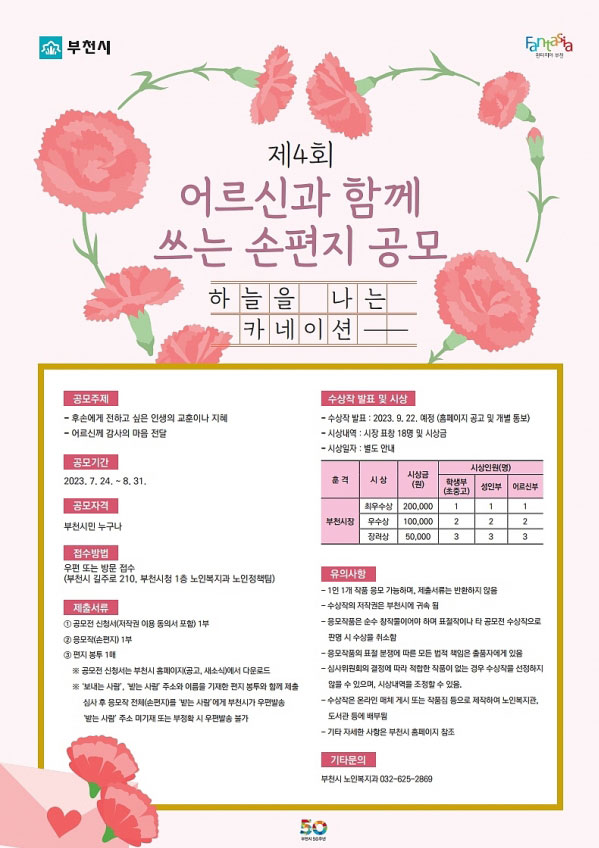ºÎõ½Ã(½ÃÀå Á¶¿ëÀÍ)°¡ ¿À´Â 7¿ù 24ÀϺÎÅÍ 8¿ù 31ÀϱîÁö Á¦4ȸ ¾î¸£½Å°ú ÇÔ²² ¾²´Â ¼ÕÆíÁö °ø¸ðÀü ¡®ÇÏ´ÃÀ» ³ª´Â Ä«³×À̼ǡ¯À» °³ÃÖÇÑ´Ù.º» °ø¸ðÀüÀº (Á¶)ºÎ¸ð, (¼Õ)ÀÚ³à, ..