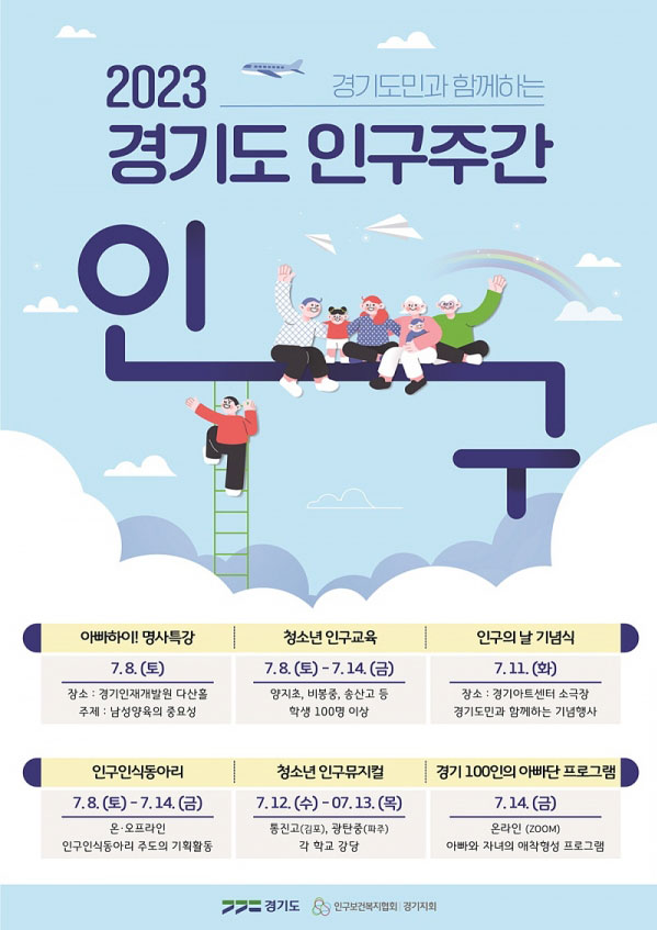 °æ±âµµ´Â 7¿ù 11ÀÏ Àα¸ÀÇ ³¯À» ±â³äÇØ ¿À´Â 8ÀϺÎÅÍ 14ÀϱîÁö ¡®2023³â °æ±âµµ Àα¸ÁÖ°£¡¯À» ¿î¿µÇÑ´Ù.¡®Àα¸ Ä£ÈÀû ¹®ÈÈ®»ê¡¯À̶õ ÁÖÁ¦·Î °æ±âµµ°¡ ÁÖÃÖÇϰí Àα¸º¸°Ç..
