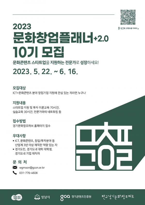 °æ±âµµ°¡ 5¿ù 22ÀϺÎÅÍ 6¿ù 16ÀϱîÁö ¹®ÈÄÜÅÙÃ÷¿Í Á¤º¸Åë½Å±â¼ú(ICT)À» Á¢¸ñÇÑ À¶º¹ÇÕ ºÐ¾ß â¾÷Áö¿ø Àü¹®ÀηÂÀÎ ¡®¹®Èâ¾÷Ç÷¡³Ê¡¯ 10±â ±³À°»ý 20¸íÀ» ¸ðÁýÇÑ´Ù.¡®¹®È..
