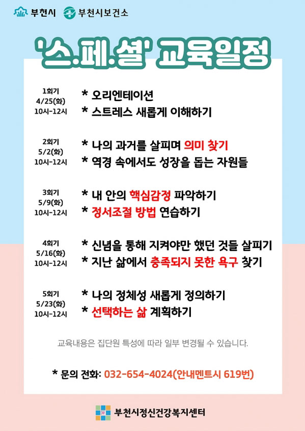 ºÎõ½Ã(½ÃÀå Á¶¿ëÀÍ)°¡ ºÎõ½ÃÁ¤½Å°Ç°º¹Áö¼¾ÅÍ(¼¾ÅÍÀå ±è½Å°â)¿Í ºÎõ½Ã¹ÎÀÇ Á¤½Å°Ç° ÁõÁøÀ» À§ÇØ »ý¾ÖÁֱ⺰ Á¤½Å°Ç° °Á¸¦ ¿î¿µÇϰí ÀÖ´Ù.±×Áß Áß³â±â(40~50´ë) ³²¡¤..