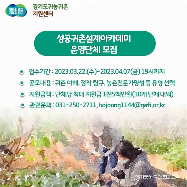 °æ±âµµ¿Í °æ±âµµ³ó¼ö»êÁøÈï¿øÀÌ ¿î¿µÇÏ´Â °æ±âµµ±Í³ó±ÍÃÌÁö¿ø¼¾ÅÍ´Â 22ÀϺÎÅÍ ¡®2023 ¼º°ø±ÍÃ̼³°è ¾ÆÄ«µ¥¹Ì¡¯ ±³À° ´ëÇà ±â°üÀ» ¸ðÁýÇÑ´Ù.¼º°ø±ÍÃ̼³°è ¾ÆÄ«µ¥¹Ì´Â °æ±âµµ..