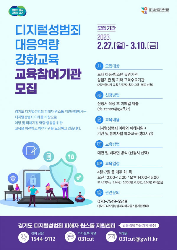 °æ±âµµ¿©¼º°¡Á·Àç´Ü °æ±âµµµðÁöÅмº¹üÁËÇÇÇØÀÚ¿ø½ºÅéÁö¿ø¼¾ÅͰ¡ 2023³â µðÁöÅмº¹üÁË ´ëÀÀ ¿ª·® °È ±³À° Âü¿©±â°üÀ» 2¿ù 27ÀϺÎÅÍ 3¿ù 10ÀϱîÁö ¸ðÁýÇÑ´Ù.¸ðÁý ´ë»óÀº û..