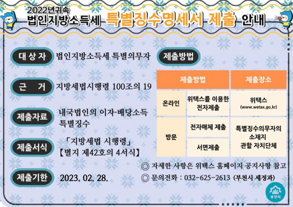 ºÎõ½Ã°¡ ¿À´Â 4¿ù ¹ýÀÎÁö¹æ¼Òµæ¼¼ È®Á¤½Å°í¡¤³³ºÎ ±â°£¿¡ ¾Õ¼ ¡®Æ¯º°Â¡¼öÀǹ«ÀÚ¡¯ÀÎ ±ÝÀ¶±â°ü, ¹ýÀÎ µî¿¡ 2¿ù ¸»±îÁö ¡®Æ¯º°Â¡¼ö¸í¼¼¼¡¯ Á¦ÃâÀ» ´çºÎÇÏ´Â ³»¿ëÀÇ ¾È³»¹®..