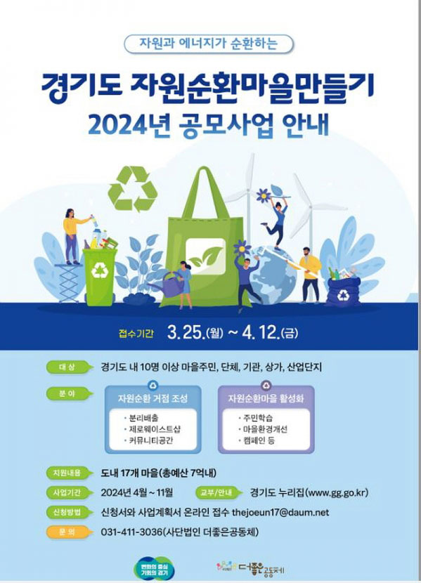 °æ±âµµ´Â ¾²·¹±â °¨·®°ú ÀÚ¿ø¼øÈ¯ ½Çõ ¹× ź¼ÒÁ߸³ ½ÇÇöÀ» À§ÇØ ¡®2024³â °æ±âµµ ÀÚ¿ø¼øÈ¯¸¶À» ¸¸µé±â»ç¾÷¡¯¿¡ Âü¿©ÇÒ ¸¶À»À» 4¿ù 12ÀϱîÁö °ø°³ ¸ðÁýÇÑ´Ù.¡®ÀÚ¿ø¼øÈ¯¸¶À»..