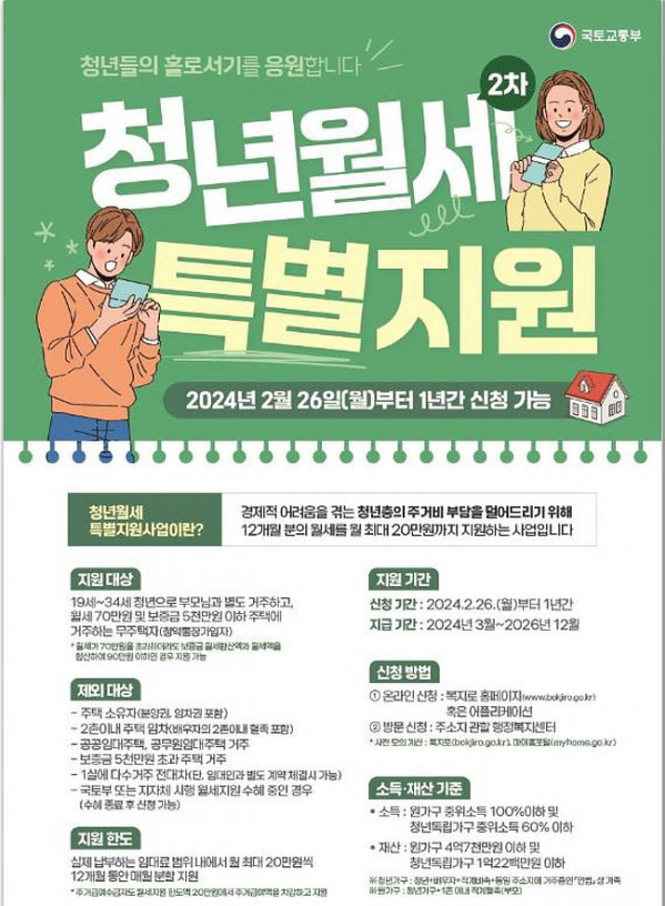 °æ±âµµ°¡ Á¤ºÎ, ½Ã±º°ú ÇÔ²² û³âµé¿¡°Ô ¿ù ÃÖ´ë 20¸¸ ¿ø¾¿ ÃÖÀå 12°³¿ù°£ ¿ù¼¼¸¦ Áö¿øÇÏ´Â ¡®Ã»³â¿ù¼¼ Ưº°Áö¿ø¡¯ »ç¾÷ÀÇ Áö¿ø ½ÅûÀ» ³»³â 2¿ù 25ÀϱîÁö ¹Þ´Â´Ù°í 27ÀÏ ..