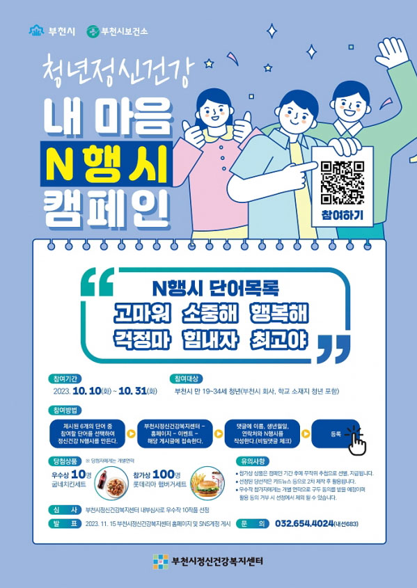 ºÎõ½Ã(½ÃÀå Á¶¿ëÀÍ) ¹× ºÎõ½ÃÁ¤½Å°Ç°º¹Áö¼¾ÅÍ(¼¾ÅÍÀå ±è½Å°â)´Â ¿À´Â 10¿ù 10ÀϺÎÅÍ 31ÀϱîÁö û³âµéÀÇ Á¤½Å°Ç°ÁõÁøÀ» À§ÇØ Ã»³âÁ¤½Å°Ç° ¡®³» ¸¶À½ NÇà½Ã¡¯ Ä·ÆäÀÎÀ» ..