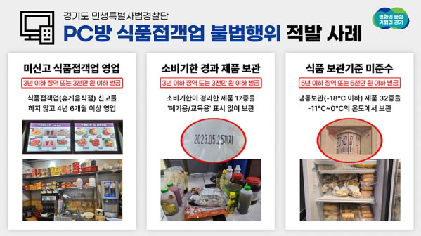 ¹Ì ½Å°í ½ÄǰÁ¢°´¾÷ ¿µ¾÷, ¼Òºñ±âÇÑ °æ°ú Á¦Ç° º¸°ü, º¸°ü ±âÁØ ¹Ì Áؼö µî °ü·Ã ¹ý·ÉÀ» À§¹ÝÇÑ PC¹æ ³» ½ÄǰÁ¢°´¾÷¼Ò°¡ °æ±âµµ ¹Î»ýƯº°»ç¹ý°æÂû´Ü¿¡ Àû¹ßµÆ´Ù.°æ±âµµ ¹Î..