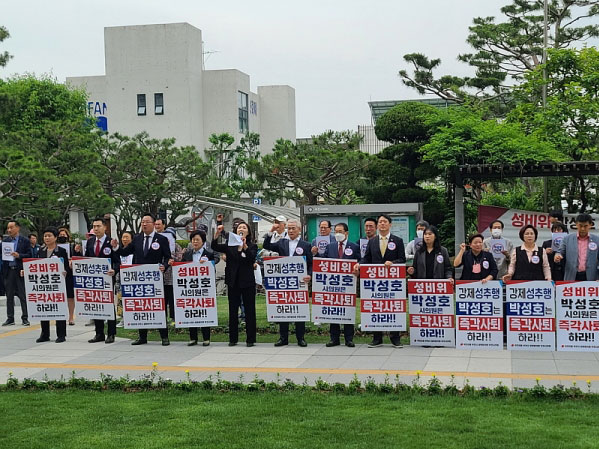 µ¿·á ÀÇ¿ø ¼º ºñÀ§ »ç°Ç°ú °ü·Ã, °æÂû ¼ö»ç¸¦ ¹Þ°í ÀÖ´Â îñ ´õºÒ¾î¹ÎÁÖ´ç ¼Ò¼Ó ¹Ú¼ºÈ£ ÀÇ¿øÀÌ 1ÀÏ 9½Ã°æ Àü°Ý »çÅ𼸦 Á¦ÃâÇß´Ù.¹Ú ÀÇ¿øÀº 1ÀÏ ¡®ºÎõ½ÃÀÇȸ ±âº» Á¶·Ê Á¦..