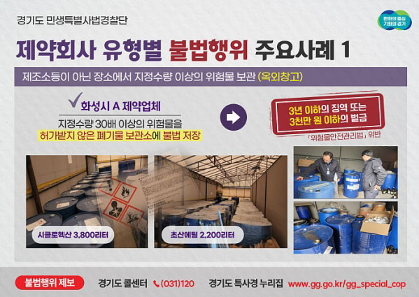 ÁöÁ¤¼ö·®ÀÇ 30¹è¸¦ ÃʰúÇÏ´Â À§Çè¹°À» ºÒ¹ý ÀúÀåÇϰųª µ¿ÀÏÇÑ Àå¼Ò¿¡ ÀúÀåÇÒ ¼ö ¾ø´Â À§Çè¹°À» ÇÔ²² ÀúÀåÇÏ´Â µî Á¦¾àȸ»ç ³» ºÒ¹ýÇàÀ§°¡ °æ±âµµ ¹Î»ýƯº°»ç¹ý°æÂû´Ü¿¡ ´ë..