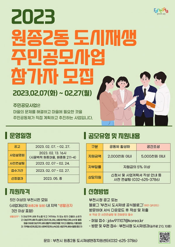 ºÎõ½Ã(½ÃÀå Á¶¿ëÀÍ)´Â ¿À´Â 2¿ù 27ÀϱîÁö ºÎõ½Ã µµ½ÃÀç»ý ½Ã¹ü»ç¾÷À¸·Î ÃßÁøÇÏ´Â ¿øÁ¾2µ¿ µµ½ÃÀç»ý Áֹΰø¸ð»ç¾÷ Âü°¡ÀÚ¸¦ ¸ðÁýÇÑ´Ù°í 7ÀÏ ¹àÇû´Ù.ºÎõ½Ã ¿øÁ¾2µ¿ ÀÏ¿øÀ»..