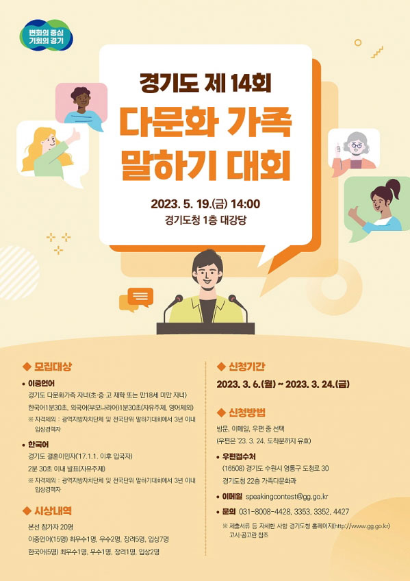 °æ±âµµ°¡ ¡®Á¦14ȸ ´Ù¹®È°¡Á· ¸»Çϱâ´ëȸ¡¯ Âü°¡ÀÚ¸¦ 3¿ù 24ÀϱîÁö ¸ðÁýÇÑ´Ù.°æ±âµµ°¡ ¡®Á¦14ȸ ´Ù¹®È°¡Á· ¸»Çϱâ´ëȸ¡¯ Âü°¡ÀÚ¸¦ 3¿ù 24ÀϱîÁö ¸ðÁýÇÑ´Ù.¿À´Â 5¿ù 20ÀÏ ..