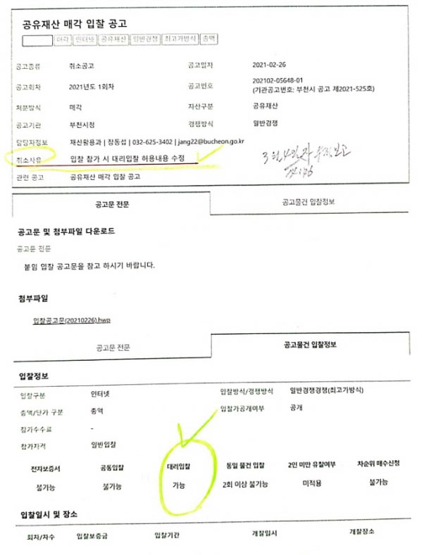 ´ç½Ã ½Ã´Â °øÀ¯Àç»êÀÎ ºÎõ½Ã ÁöºÐ 2ÇÊÁö¸¦ ¿¹Á¤°¡°Ý 122,981,840¿ø°ú 54,543,320¿ø µî ÃÑ 177,525,160¿ø¿¡ ÃÖÀúÀÔÂû°¡¸¦ Á¦½ÃÇÏ°í ´ë¸®ÀÔÂû °¡´É, °øÀ¯ÀÚ ¿©ºÎ µî ÀÔÂû À¯Çü Á¦½ÃÇß´Ù.